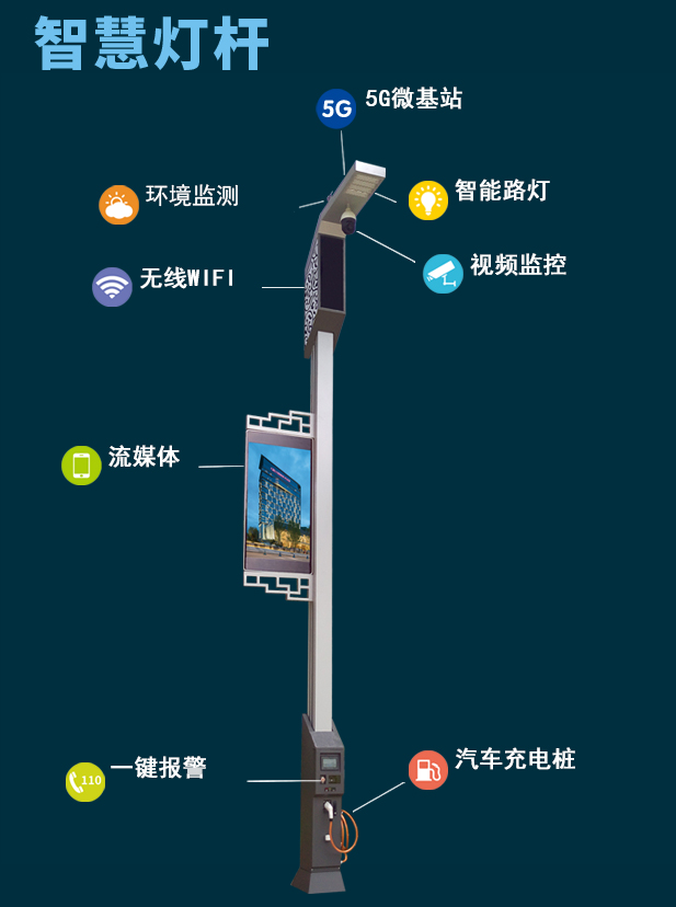 以集照明、5G微基站、監(jiān)控、報(bào)警設(shè)備等多種信息技術(shù)為一體的智慧燈桿,實(shí)現(xiàn)了多桿合一,為5G賦能,打造智慧燈網(wǎng),建設(shè)智慧城市提供了很好的載體。