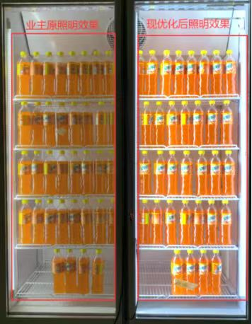 大量的數(shù)據(jù)采集和用專業(yè)光學(xué)設(shè)計仿真軟件的真實情況模擬,不斷地優(yōu)化燈具的結(jié)構(gòu)和發(fā)光角度,昭信照明最終設(shè)計出了產(chǎn)品平面照度均勻度達到0.6以上而且空間照度差異小的商用冷柜的專用燈具,比市場同類產(chǎn)品的照度均勻值0.2提升1倍多。燈具的安裝方式也使用了見光不見燈的隱藏式方法,大大地提高了客戶視覺體驗的舒適度。整體設(shè)計效果令人感覺燈光非常的均勻舒適,又不會眩目。
